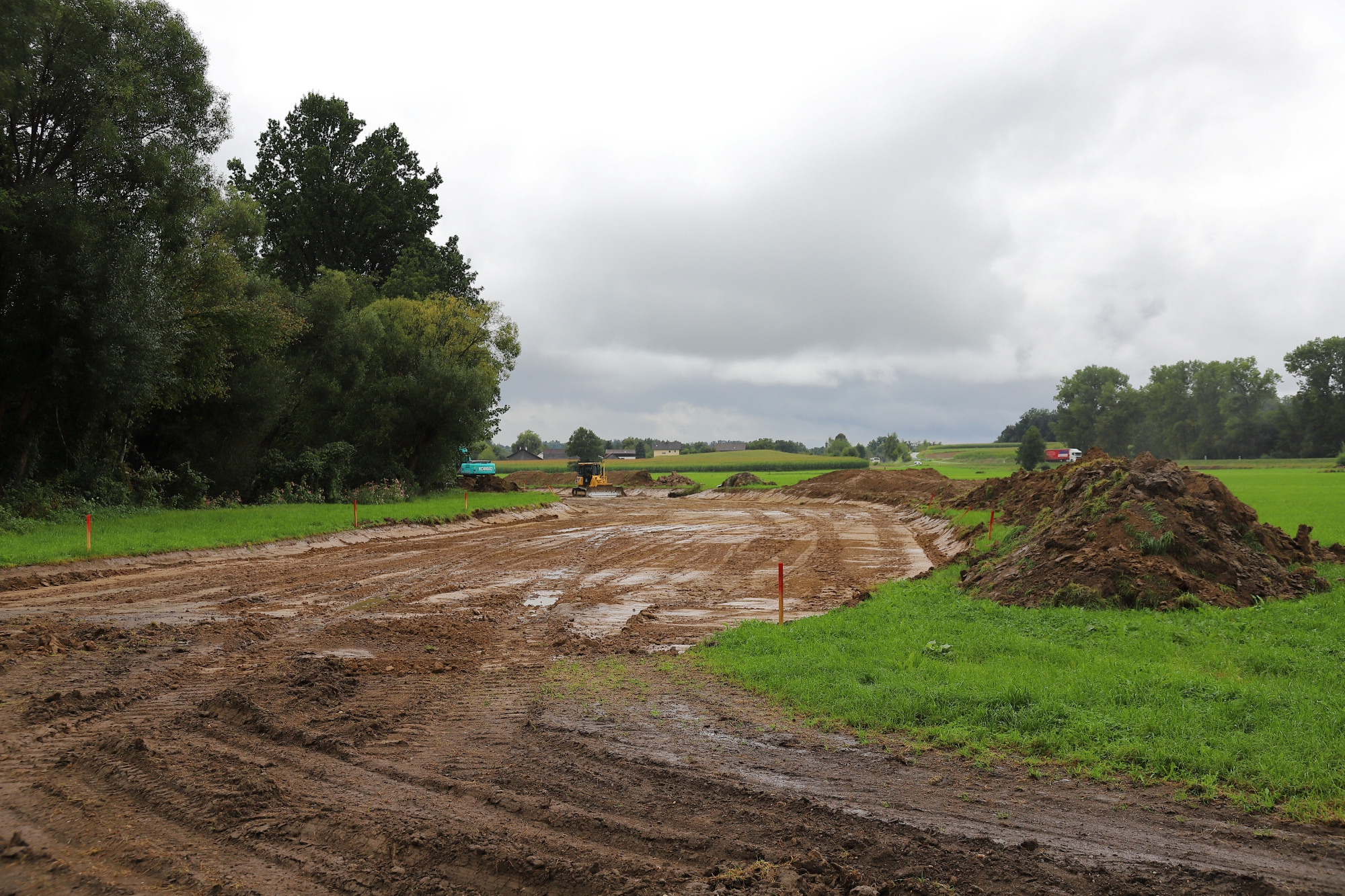 Die Erdarbeiten zum Ausgleich des Retentionsraumes der Hengersberger Ohe haben begonnen. Nach Abschluss der Erdarbeiten wird die Fläche angesät.
