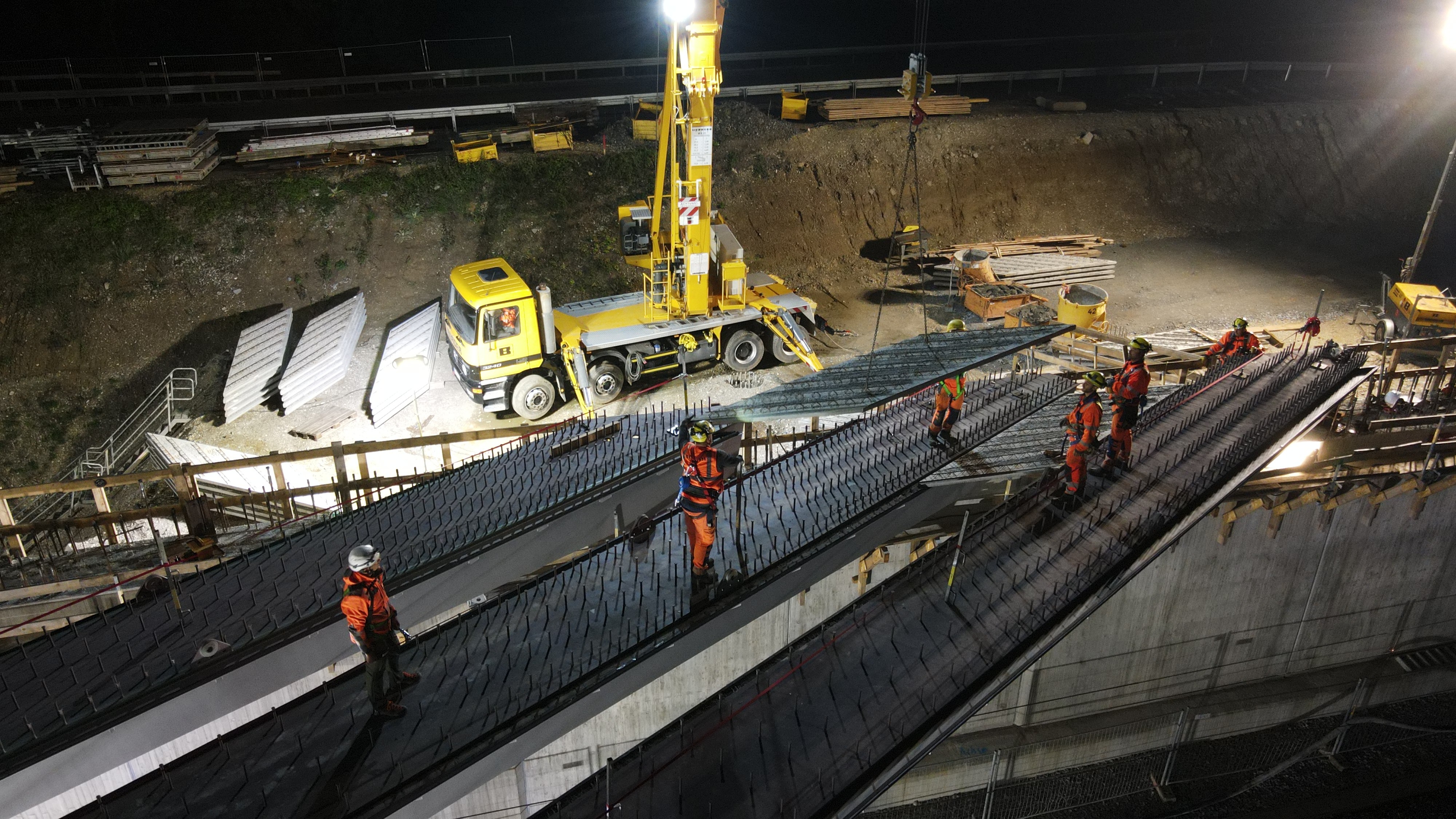 Auch die Filigranbetondecken wurden in den beiden Nächten eingehoben.
