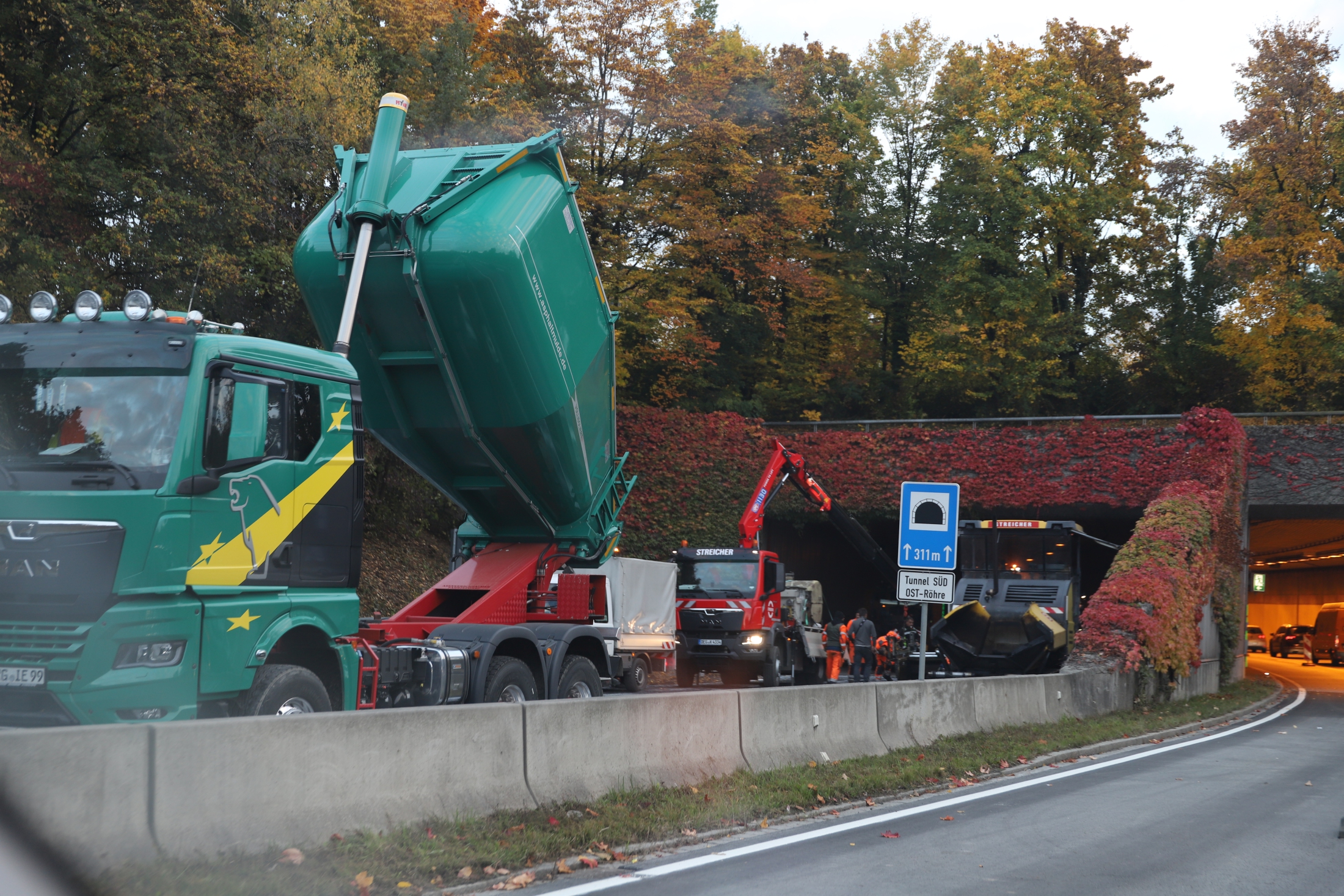 In den vergangenen Wochen wurde die Fahrbahn der B 11 außerhalb der Tunnel erneuert. Erforderlich war diese Fahrbahnsanierung, weil vermehrt Probleme mit der Griffigkeit aufgetreten waren, zudem wurden Rissbildungen festgestellt. Um die Dauerhaftigkeit zu erhöhen, wurde im Zuge der Arbeiten ein Asphaltgewebe eingebaut. Zudem wurde zwischen Nord- und Süd-Tunnel die Straßenentwässerung angepasst, auch die Rampen zur Martinskirche wurden instandgesetzt.