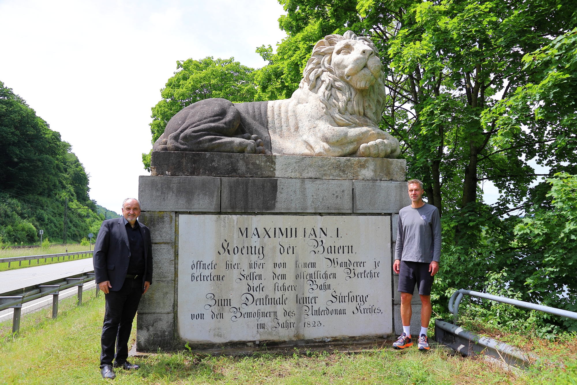 „Die Erhaltung unser wertvollen Bau- und Kunstdenkmäler mit staatlicher Baupflicht sind uns am Staatlichen Bauamt Passau ein wichtiges Anliegen“, erläutert der Behördenleiter Norbert Sterl. „Das Löwendenkmal an der B 8 steht auf Straßengrund, daher sehen wir uns für die Erhaltung dieses Kunstdenkmals verantwortlich und haben unsere Dombauhütte mit den Instandsetzungsarbeiten beauftragt.“ Das Denkmal mit dem Wappentier Bayerns wurde im Jahr 1823 von den Gemeinden der Landgerichte Passau und Vilshofen errichtet, anlässlich der Fertigstellung des Straßenneubaus, auf den auch eine Inschrift auf dem Sockel des Löwendenkmals hinweist.
