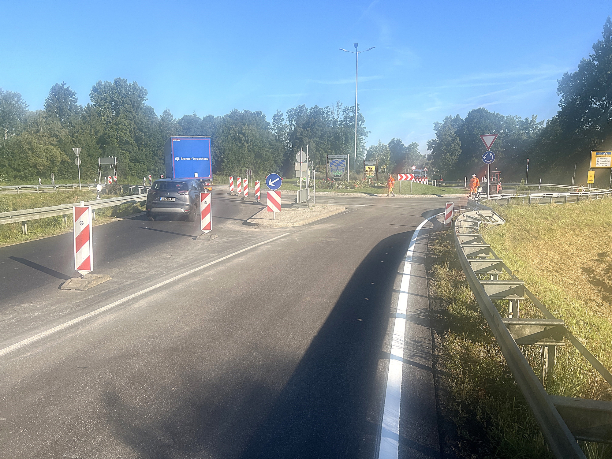 Gute Nachrichten für alle Verkehrsteilnehmer auf der B 8 bei Plattling: Die Fahrbahnsanierung ist schneller beendet als ursprünglich gedacht. Bereits am Freitagmittag und damit eine Woche früher als geplant konnte der Kreisverkehr in Richtung Tabertshausen wieder für den Verkehr freigegeben werden.