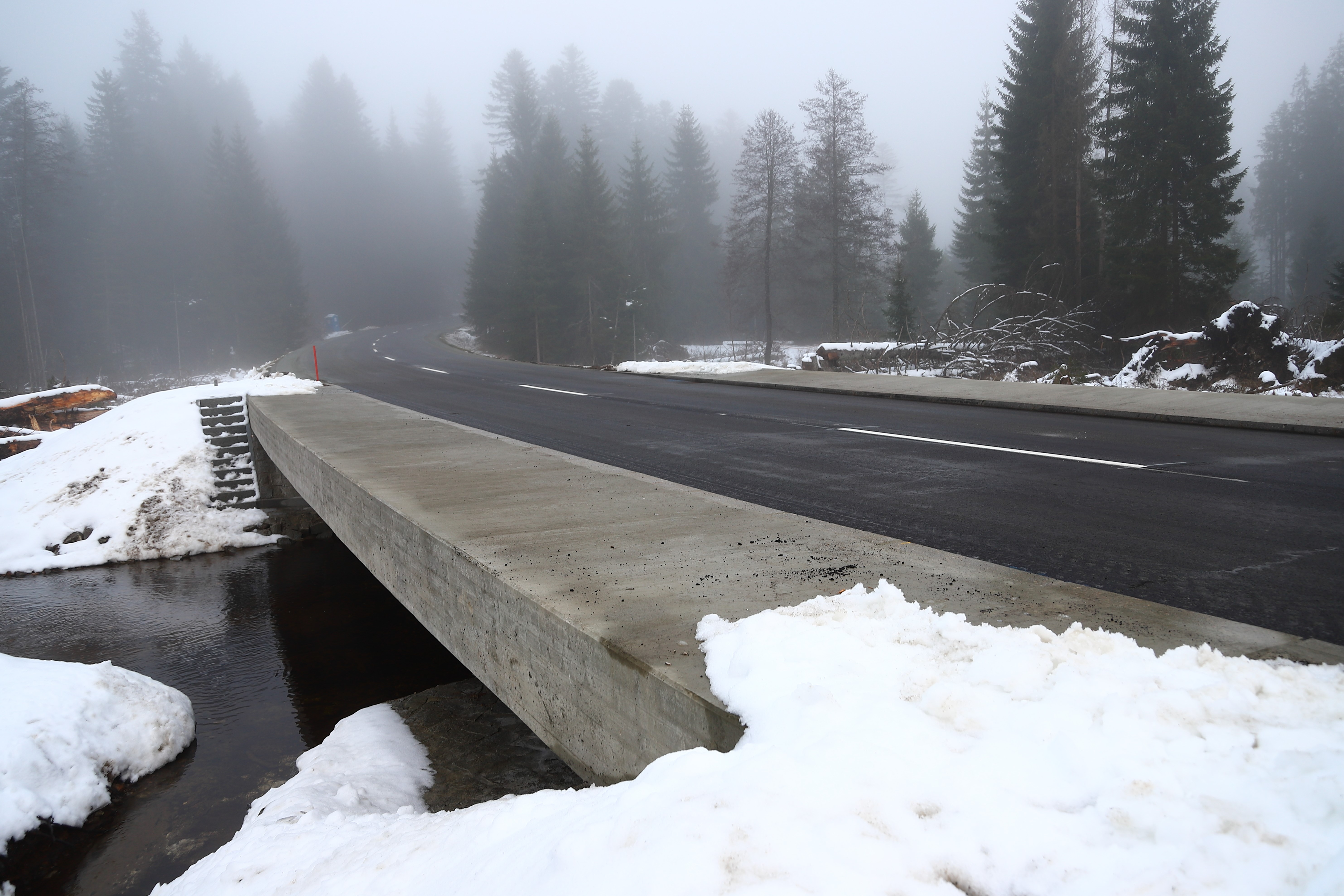 Jetzt ging es doch schneller als gedacht: Noch vergangene Woche hatte es so ausgesehen, als müsste die Nationalparkstraße (FRG 4) im Bereich Aufschlägersäge bis Mitte Dezember gesperrt bleiben. Doch die Markierungsarbeiten rund um die neu errichtete Brücke über die Große Ohe konnten am Mittwoch abgeschlossen werden, damit ist die Straße ab 4. Dezember wieder für den Verkehr freigegeben.